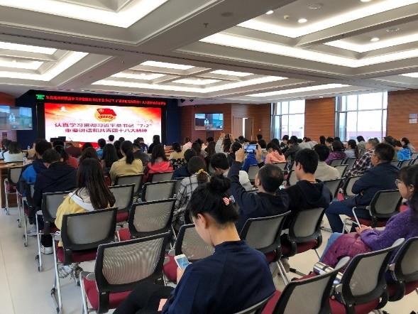 长春分院团委书记尚阳从团的十八大精神学什么到怎么学,向全体参会人员提出了明确要求,他系统解读了习近平总书记7.2讲话精神、党中央致词以及团的十八大报告产生的一些重要理论成果,从逻辑关系上带领大家进行了捋顺和学习,并结合我院战略定位,要求科研人员要围绕“三个面向”、“四个率先”回归科研本质,踏实工作,培养推动和贡献科研的情怀,并向管理人员和研究生分别提出了下一步工作要求,为全体青年职工和研究生上了一堂生动的团课。