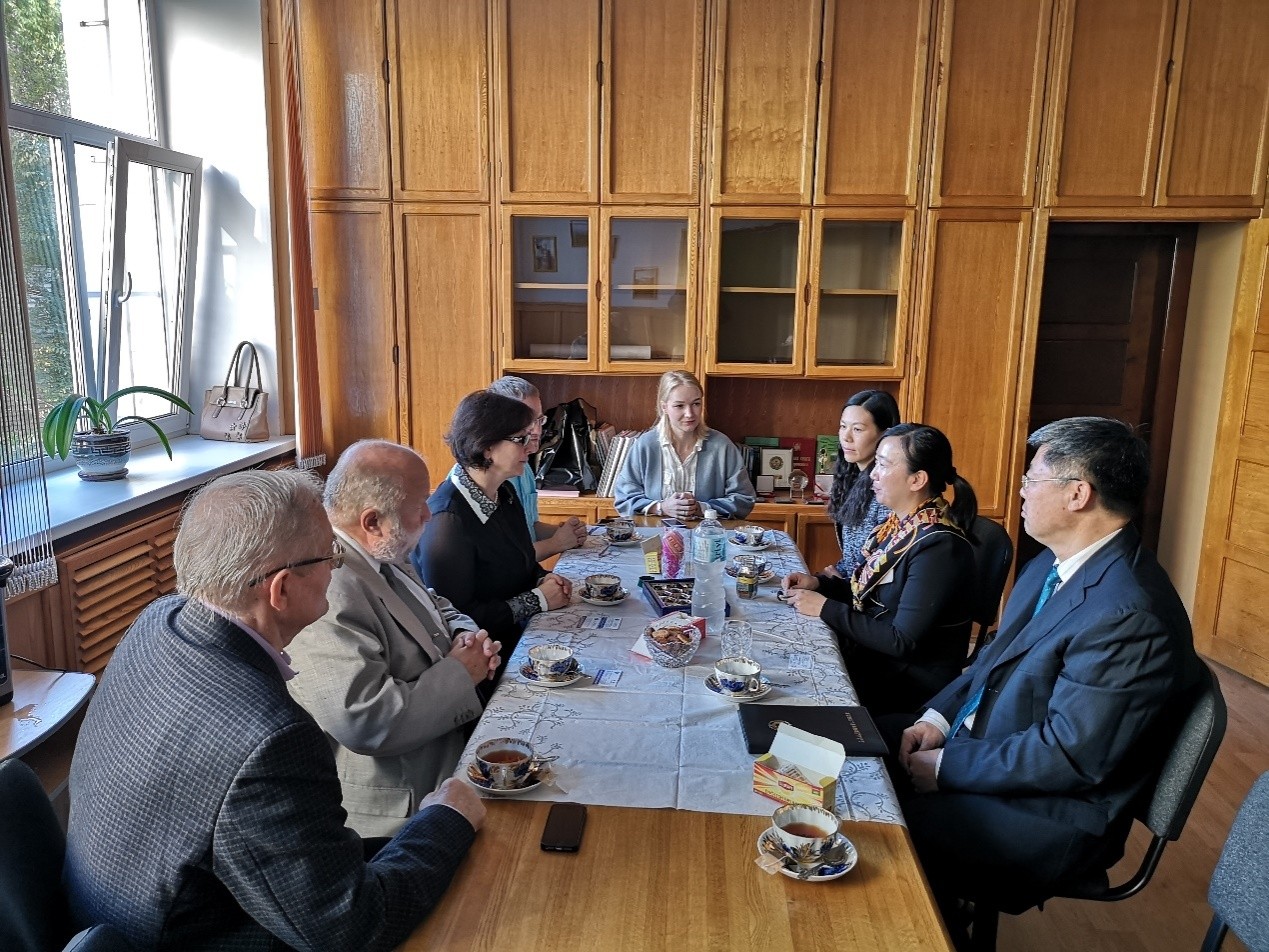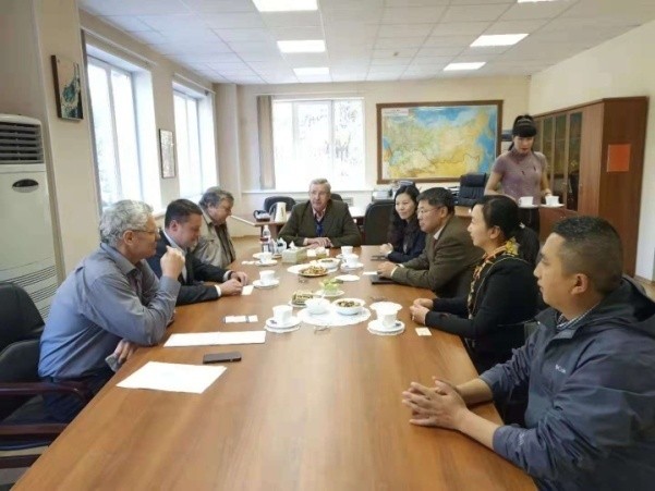 10月9日,代表团一行访问了俄罗斯科学院远东分院太平洋地理研究所,与所长Victor V. Ermoshin研究员、学术顾问Petre Y. Baklanov院士、副所长Kirill S. Ganzei研究员进行深入会谈。双方共同回顾了合作历史,在当下中俄深化共建“一带一路”和“欧亚经济联盟”对接合作的新形势下,展望中俄科技合作的广阔前景,就两所续签合作协议、东北亚区域资源环境?;び肭蚩沙中⒄棺ㄖ墓餐嘈?、共建远东联合实验室、野外试验站交流合作、联合申请两国政府间双边项目等共同关心的问题充分交换意见,就深入落实《长春宣言》等内容展开详细讨论。