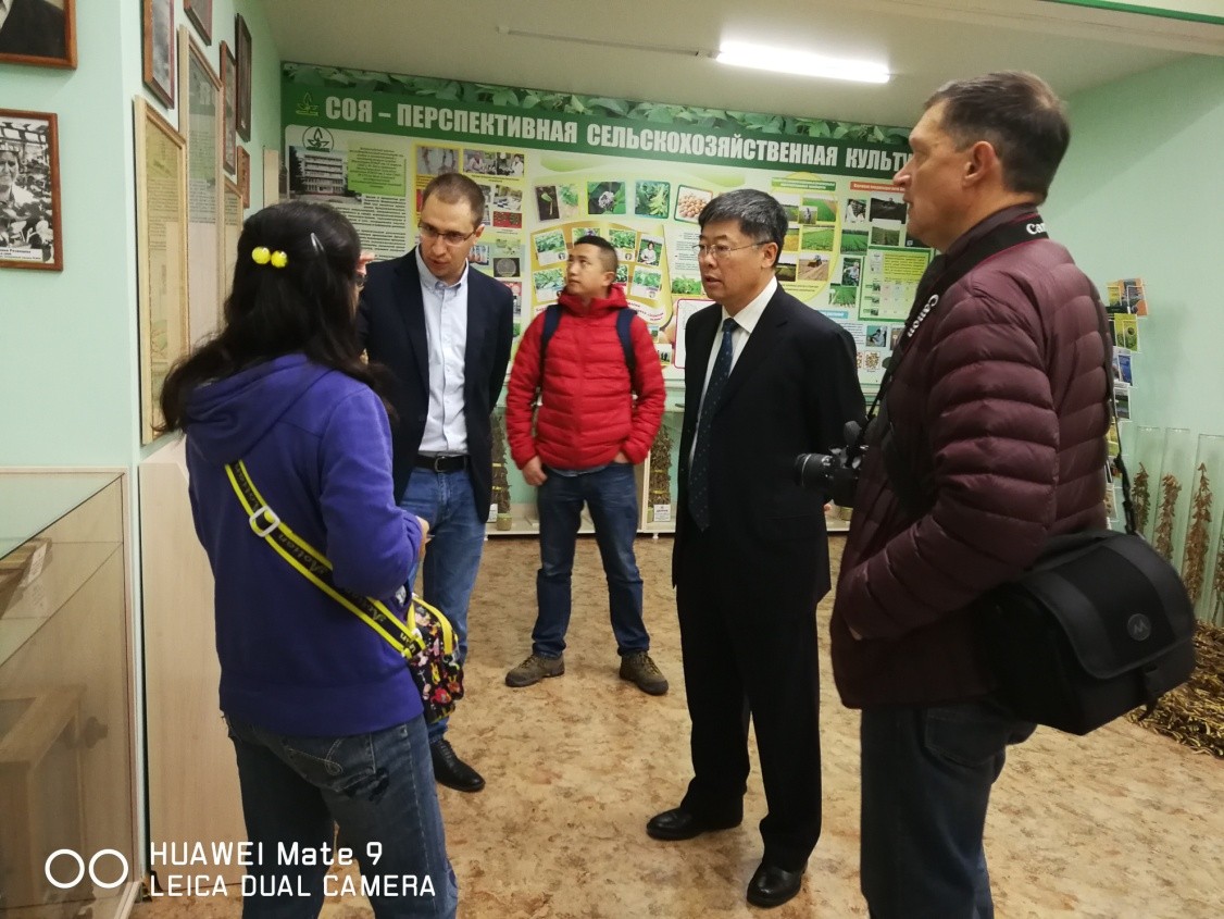 10月11日,代表团一行访问了俄罗斯农业科学院全俄大豆科学研究所。该所首席研究顾问、所科研负责人Sinegovskii Mikhail Olegovich博士介绍了该所情况,重点介绍了其在大豆育种、大豆抗寒、大豆品质鉴定等方面研究和工作情况。苏阳书记向Sinegovskii Mikhail Olegovich博士详细了解了该所农业科技成果转化和推广的相关工作,介绍了东北地理所在大豆育种方面的研究进展与取得的重要成果。双方表达了希望能发挥各自积累,探讨和深入合作的愿望。全俄农科院大豆研究所是俄罗斯开展大豆研究的最重要的国家科学研究机构,设有11个实验室,拥有试验农场15000 公顷。在大豆育种、生物栽培技术、根际微生物和大豆加工等方面拥有雄厚的实力,同时还为国家提供农产品安全检测。此次是东北地理所与其开展的首次官方交流,为双方科学家建立联系与探讨深入合作了奠定基础。