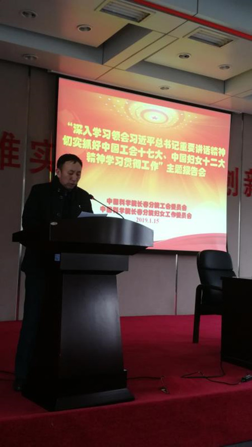 为推动长春分院各单位新时代群团工作开创新局面、实现新发展,1月15日,长春分院举办“深入学习领会习近平总书记重要讲话精神 切实抓好中国工会十七大、中国妇女十二大精神学习贯彻工作”主题报告会,集中学习贯彻习近平总书记关于群团工作的重要讲话精神和中国工会十七大、中国妇女十二大精神。长春分院分党组书记甘建国做动员讲话,组织人事处处长于学锋主持会议。来自长春分院机关及各所站工会、妇工委分管所领导、部门负责人、管理骨干人员以及基层工会、妇工委负责同志等70余人全程参加学习。