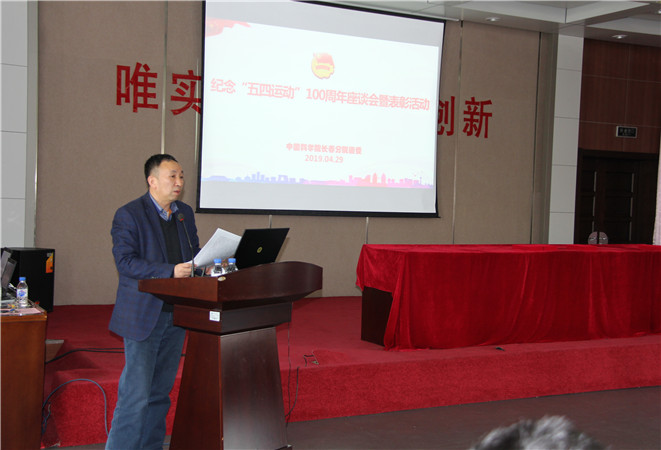 会上,表彰了2018年度长春分院“两优两红”和“青年先锋”获奖集体和个人。来自分院系统各单位的4位优秀青年代表分享了对五四精神内涵和新时代践行五四精神方式的理解和认识。长春光机所机器人中心李行分享了她所在的团队“勇于吃苦,坚忍不拔,和谐进取”的创新奋进的文化品牌;长春人卫站光电观测研究室康喆分享了他立足岗位,践行五四精神,打破国外对激光器相关器件技术垄断的奋斗历程;东北地理所院黑土区农业生态重点实验室李向楠结合其科研历程,诠释了“传承五四精神 做实干青年”的信念;长春应化所高分子物理与化学国家重点实验室简忠保,结合其海外留学和归国经历,讲述了他践行“学成回国效力”志向的动人故事,分享了其“把科研创新论文写在祖国大地上”的探索科技前沿、面向国家需求的科技报国情怀。四位报告人都从不同角度分享了他们对五四精神内涵的认识,交流了在新时代践行五四精神的感悟,充分展现了分院系统青年同志胸怀家国、奋勇担当的情怀和信念。