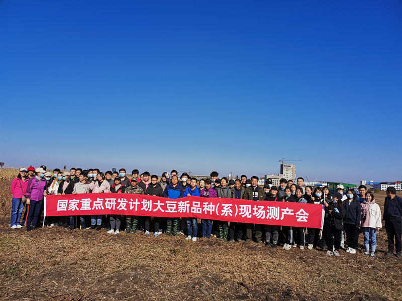 此次测产地点处于第三积温带下限,2020年经历了低温、多雨、光照不足,又遇到8、9月份三场台风灾害,两个品系长势良好,表现出杆强、抗倒伏、抗病,4200亩连片产量创高产,主要是使用了大豆高产栽培体系,合理轮作、精细播种、合理的施肥以及全植保方案等规范化管理,本次大面积示范种植通过品种与高产栽培技术的结合,为实现大面积连片大豆增产增效和国家粮食安全提供了有效的技术支撑。本次大面积示范种植得到了中国科学院重点部署项目和国家重点研发计划项目的支持。