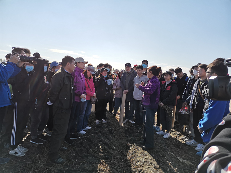 测产之前,李艳华为前来实习的黑龙江大学学生现场讲解了测产原理和意义。
