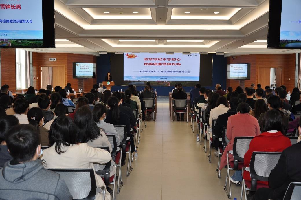 为坚定不移推进党风廉政建设和反腐败工作,营造风清气正的科研创新环境,4月2日,东北地理所召开廉政警示教育大会,所长姜明,党委书记、副所长苏阳,副所长李秀军、王宗明、武海涛,党委副书记、纪委书记王晓慧等全体班子成员,党委委员,纪委委员出席大会,全所职工300余人参加会议,会议由所纪委副书记、党办(监审室)副主任李颖主持。