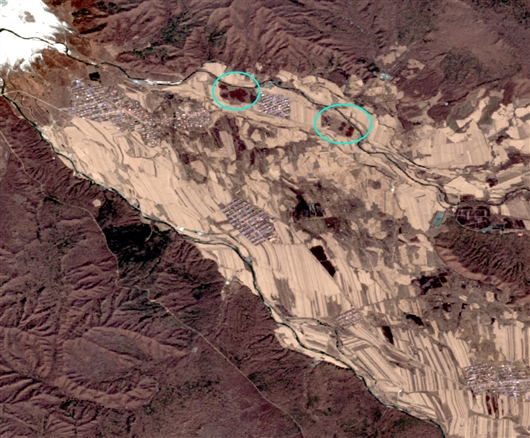 五常市沙河子镇福太村4月5日遥感图像,画圈部分为被盗取耕地,目前黑土已归还田地。