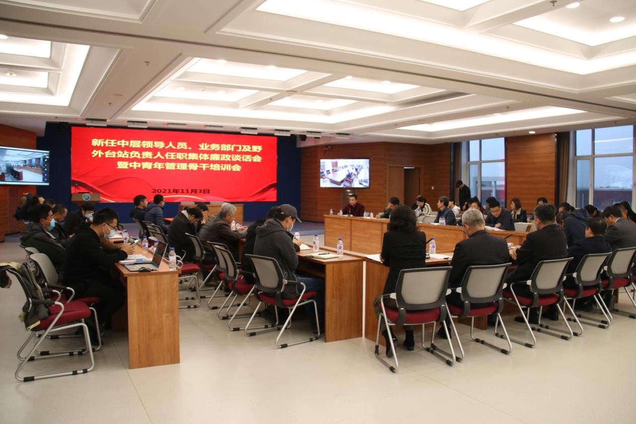 党委书记苏阳代表所党委与中层干部作集体廉政谈话,并对中层干部进行了上岗专题培训。他以“守住底线 锐意进取 创先争优——做忠诚 干净 担当 履职尽责的党的好干部”为题作专题报告。他从年龄结构、学历结构、专业背景、政治面貌等方面对新任职中层干部整体情况进行了全面梳理。他指出,这次调整按“精兵简政、按需设岗、双向选择、竞争上岗”的原则,坚持把政治标准放在首位,选拔聘用又红又专的干部,为更多专业背景好同时具有一定管理能力的优秀的年轻人提供了锻炼机会。他进一步阐述了廉政谈话的目的和意义,对中层干部提出廉洁从政的具体要求,并结合习近平总书记在2021年秋季学期中央党校(国家行政学院)中青年干部培训班开班式上发表的重要讲话精神,对中层干部强化责任意识、履职担当提出五点要求:一要加强政治理论学习,二要有崇高理想和坚定信念,三要坚持一切从实际出发,四要敢担当、善作为,坚持斗争精神,五要讲规矩、守底线。