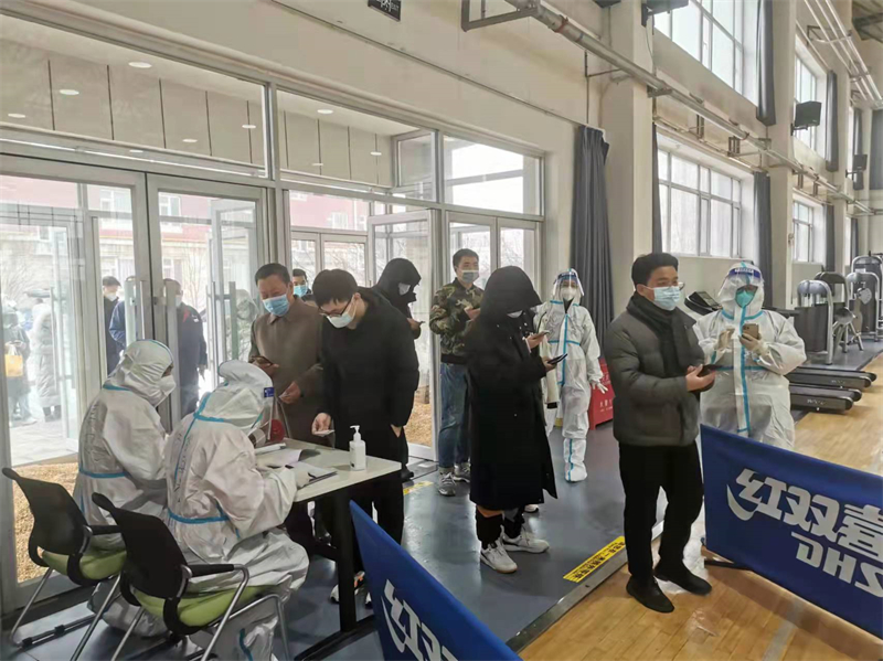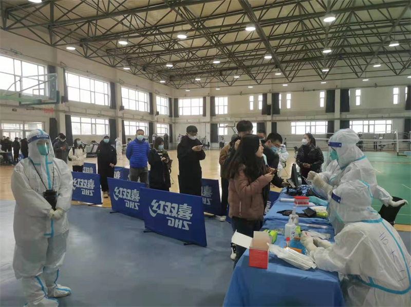 党员干部带头做志愿服务,配合社区防疫人员组织所内职工及家属、研究生开展核酸检测。