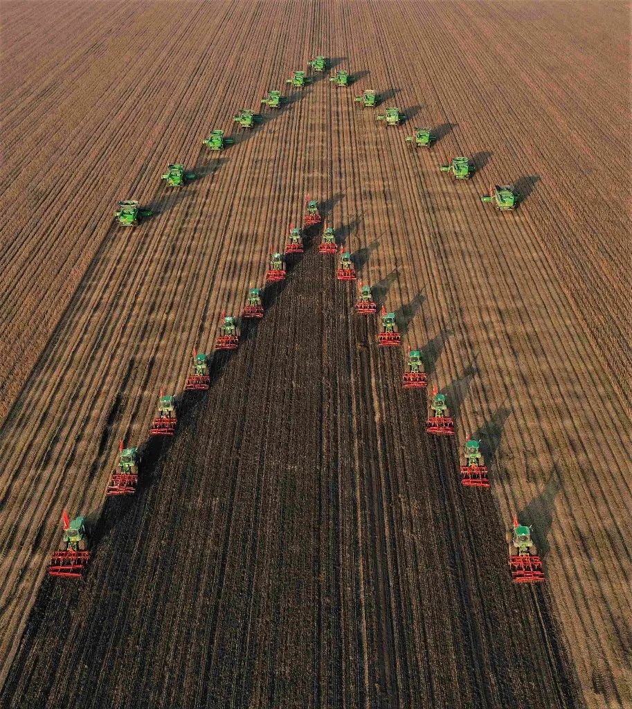 北大荒集团鹤山农场有限公司在大豆收割、整地同步进行。吴树江 摄