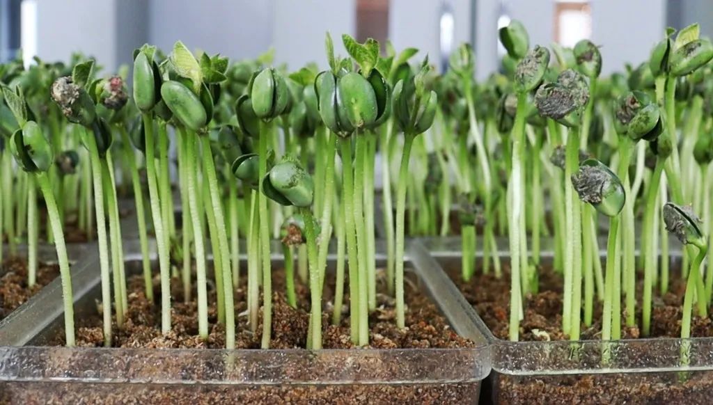 实验室里的大豆种子发出嫩绿的芽。吴树江 摄