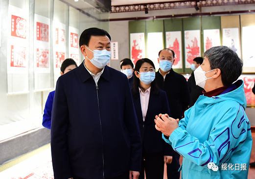 在海伦市剪纸展馆,张宝伟与国家级非物质文化遗产海伦剪纸艺术传承人交流,详细了解海伦剪纸发展历程。他强调,要挖掘好、宣传好、传承好海伦剪纸文化,坚定不移走好传承与发展之路,增强文化底蕴,不断创新形式,坚持以歌颂党、歌颂祖国、歌颂人民幸福生活为根本,创作出更多的艺术佳作,把海伦剪纸的特色文化品牌持续叫响。要用好省、市发展创意设计产业的扶持政策,大力发展剪纸产业,发挥文艺作品在文化建设中的重要作用。