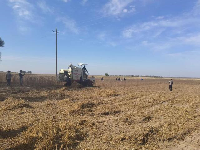 “收割开始!”随着现场指挥的一声号令,轰隆隆的收割机开始在划定区域的大豆田间进行收割。收割完毕之后,接下来就是杂质称重、检测水分等一系列测产程序。