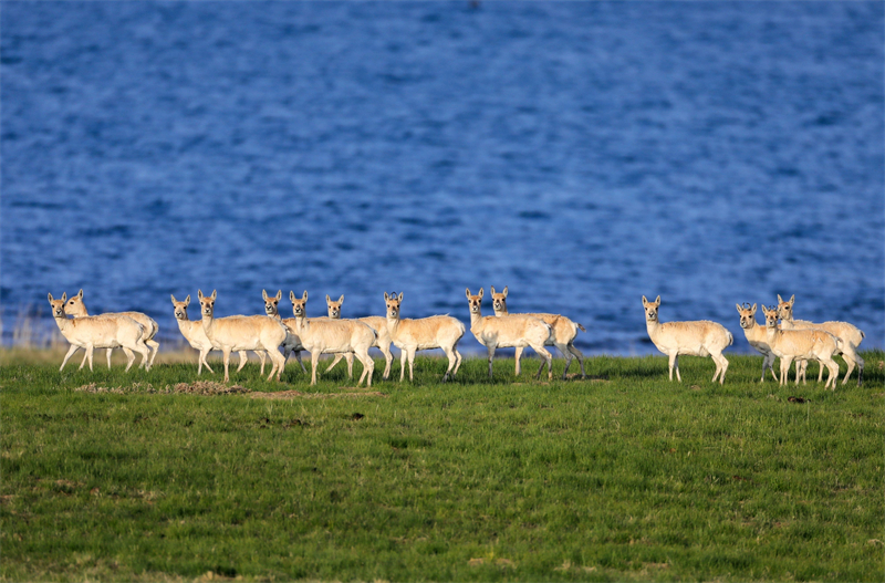 青海湖鸟岛国际重要湿地湖滨的普氏原羚。国家林草局供图