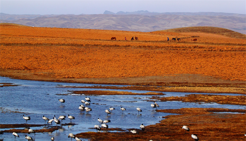 拍摄到的鹤群(云南大山包国际重要湿地)。国家林草局供图