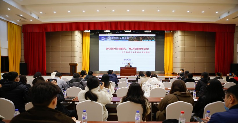 主题报告从对企业的认识、不断完善管理体系和持续提升管理能力三个部分展开。详细阐述了企业经营与管理中存在的共性问题以及有效管理的十五个主要???,并从管理者角度思考,细化了管理者主要工作职责和提升领导力、执行力的有效途径。希望企业家们在市场竞争日益激烈的形势下,以昂扬的斗志、过硬的作风、高超的本领,朝着正确的方向奋勇向前,不断做大做强,努力打造百年名企。此次讲座还邀请了长春市50余家企业负责人参加,会后甘建国院长与企业家们进行了座谈交流。