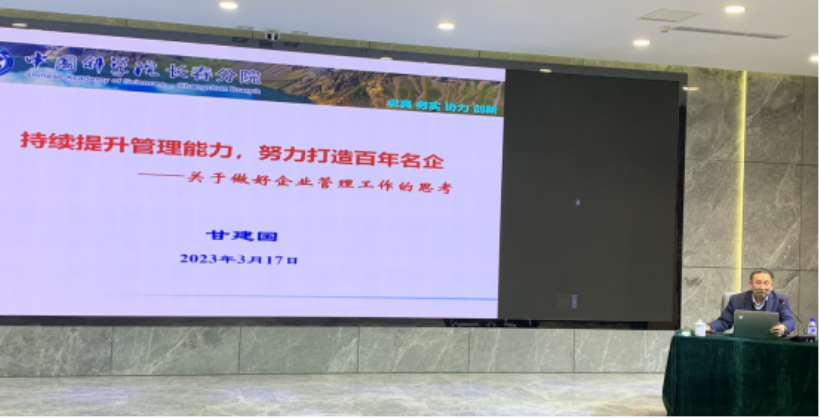 长春分院分党组书记、院长甘建国以“持续提升管理能力,努力打造百年名企——关于做好企业管理工作的思考”为题,面向南关区各科技企业董事、负责人做专题报告。报告从对企业的认识、不断完善管理体系和持续提升管理能力三个部分展开。详细阐述了企业经营与管理中存在的共性问题以及有效管理的十五个主要???,并从管理者角度思考,细化了管理者主要工作职责和提升领导力、执行力的有效途径。希望企业家们在市场竞争日益激烈的形势下,以昂扬的斗志、过硬的作风、高超的本领,朝着正确的方向奋勇向前,不断做大做强,努力打造百年名企。