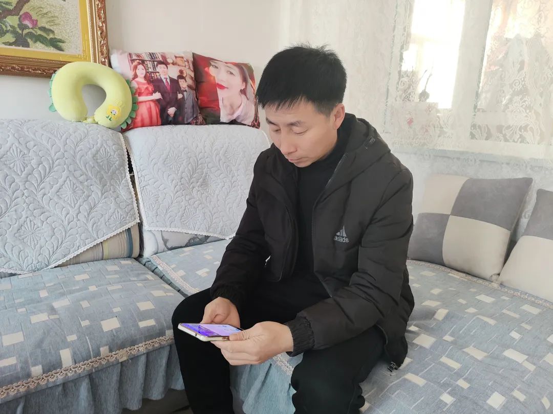 古庙村村民丁海波使用掌上产业园小程序。(记者 王天茹 摄)