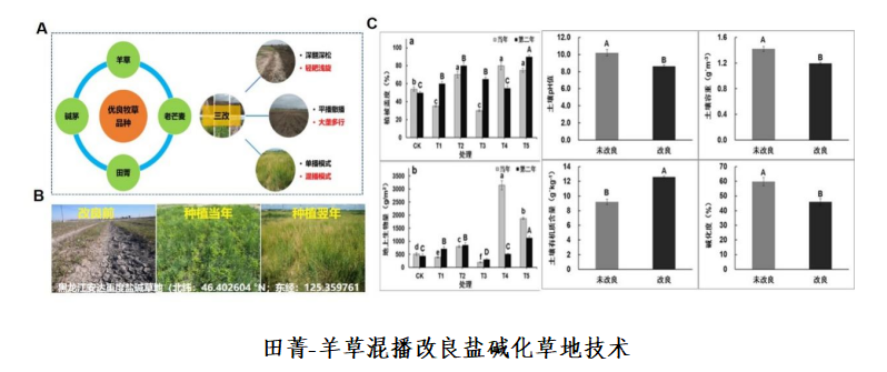 随后,科研团队收集了国内外近400份田菁种质资源,利用野生驯化、杂交选育等方式,成功选育出6个高产、优质的田菁新品系,其中1个已通过国家草品种区域试验申请,并以此构建了新型盐碱草地改良技术。