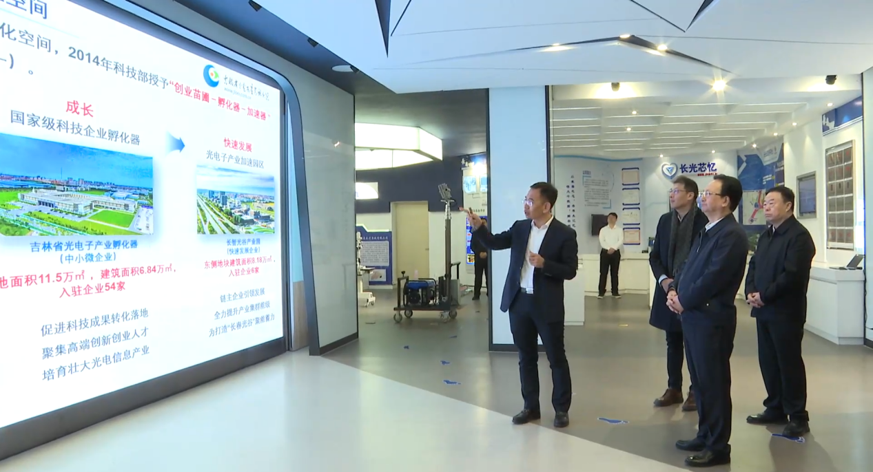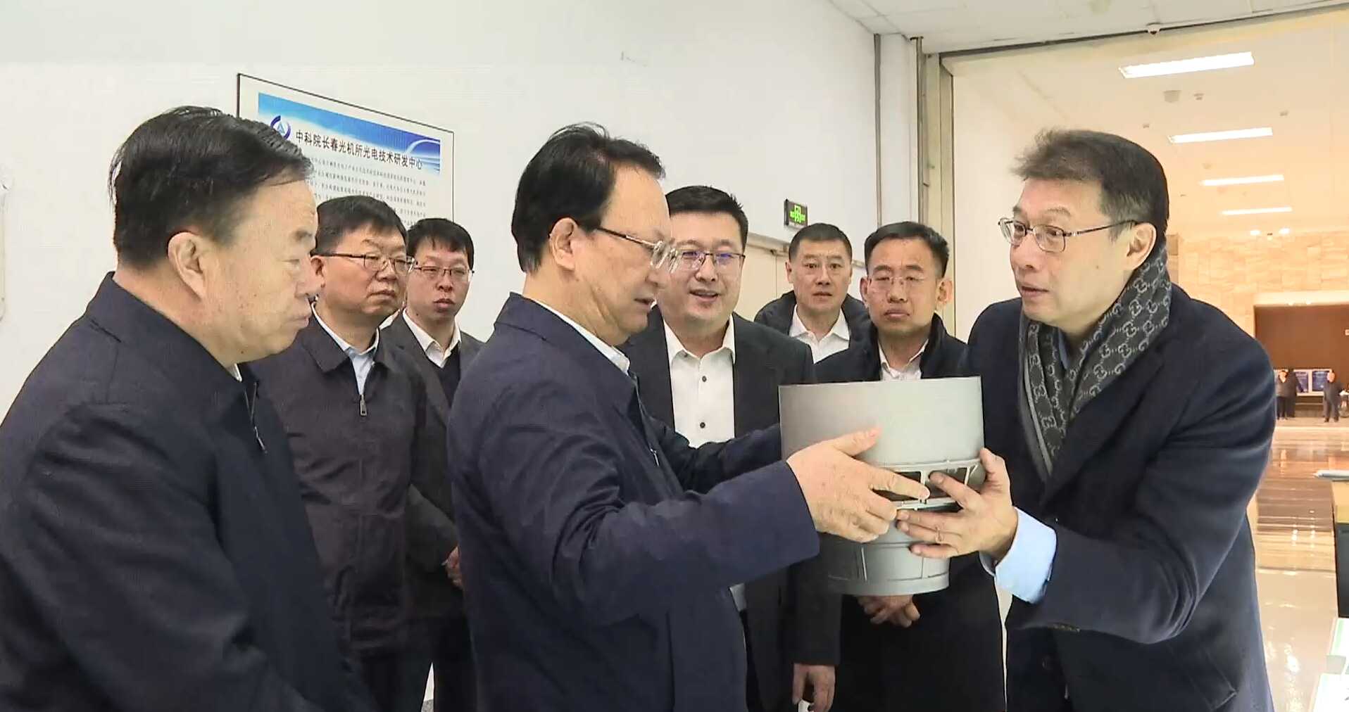 农历正月初十(2月19日)上午,吉林省委书记景俊海到吉林省光电子产业孵化器(简称“光电子孵化器”),围绕孵化器运行情况进行调研。他强调,要深入贯彻习近平总书记在中共中央政治局第十一次集体学习时和在新时代推动东北全面振兴座谈会上的重要讲话精神,坚持以科技创新推动产业创新,加快培育新质生产力,积极抢占发展新赛道,为推动吉林高质量发展、可持续振兴夯基赋能。中国工程院院士、中国科学院长春光机所所长张学军,中国科学院长春光机所副所长孙守红接待并汇报工作。